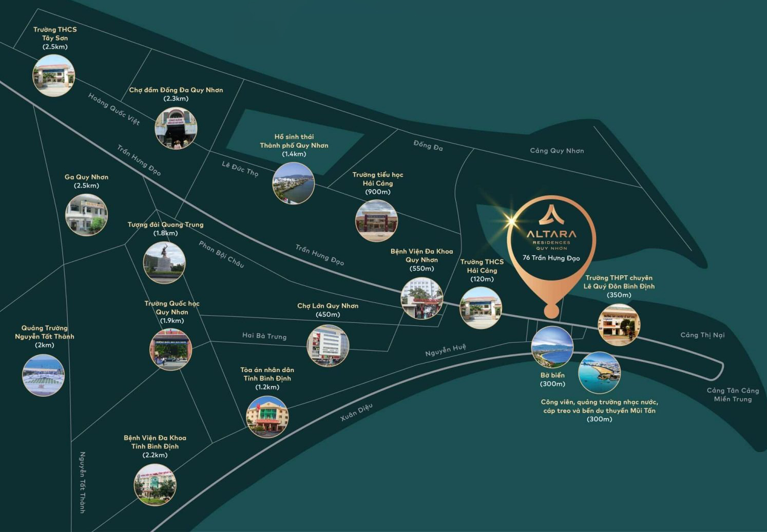 Căn hộ Altara Residences Quy Nhơn có vị trí đắc địa nắm tại số 76 Trần Hưng Đạo, Phường Hải Cảng, Thành phố Quy Nhơn, tỉnh Bình Định. Ngay cạnh, công viên Mũi Tấn và Quảng trường nhạc nước ven biển độc đáo tại Quy Nhơn.