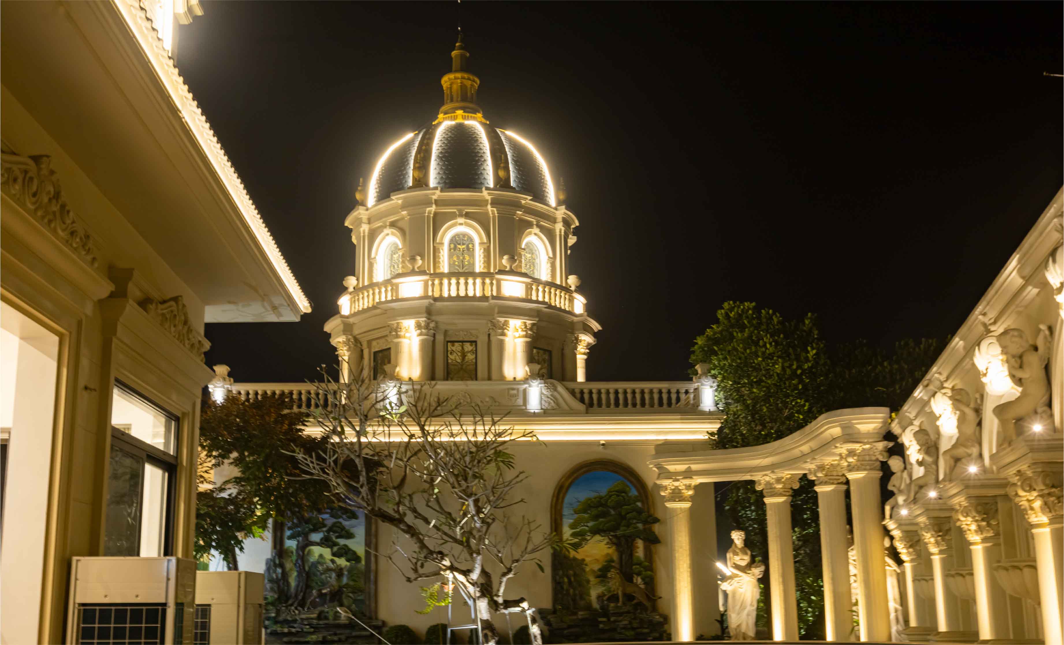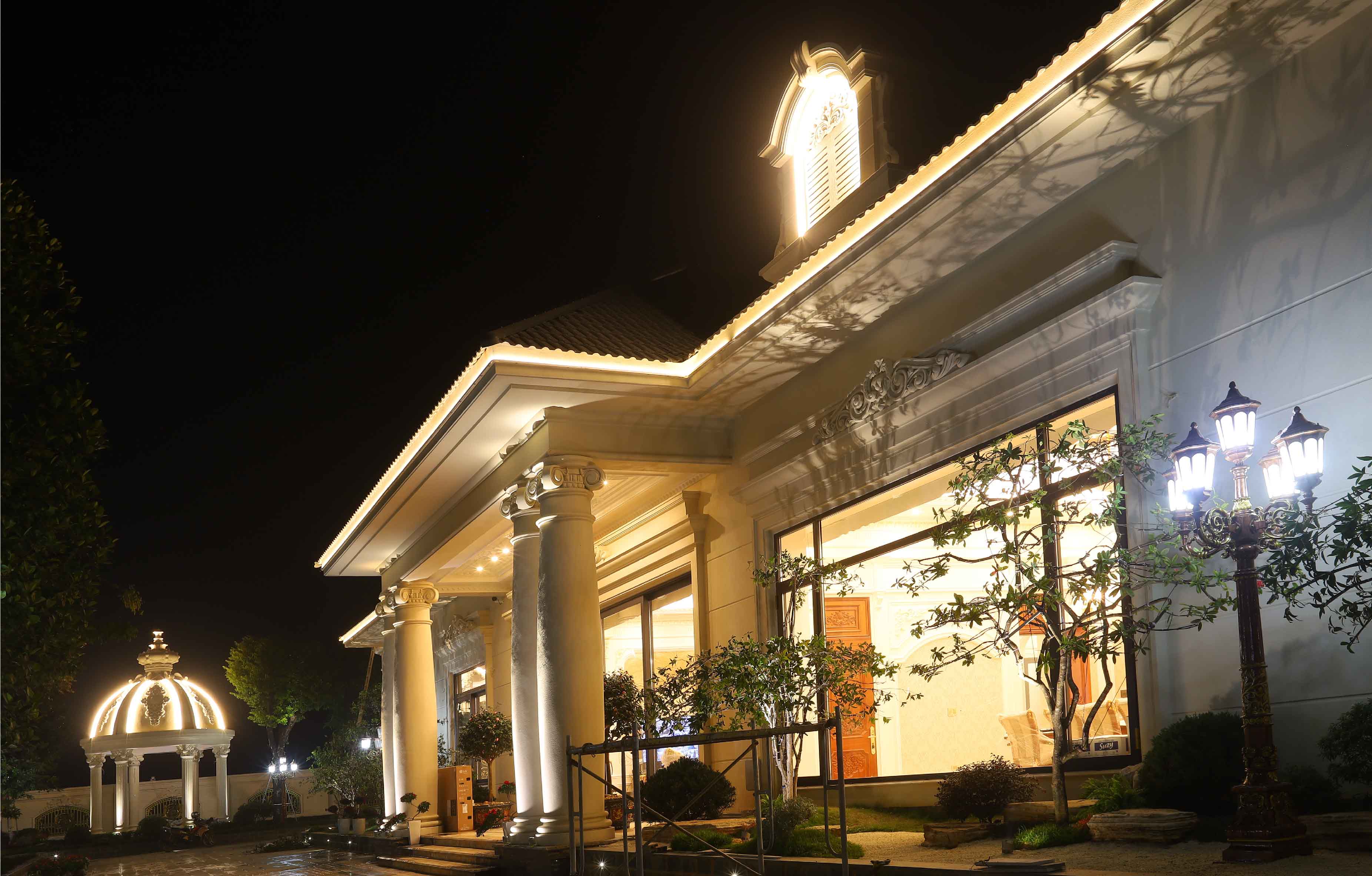 Tọa lạc tại vùng đất trung du yên bình của Phú Thọ, biệt thự của Mr. Thái là một công trình kiến trúc đậm chất cổ điển, nổi bật với vẻ nguy nga, lộng lẫy. Để tôn vinh từng đường nét tinh xảo và thổi hồn vào không gian kiến trúc này khi màn đêm buông xuống, Doza Illumination đã được tin tưởng giao phó trọng trách thiết kế hệ thống chiếu sáng mỹ thuật cho toàn bộ biệt thự.