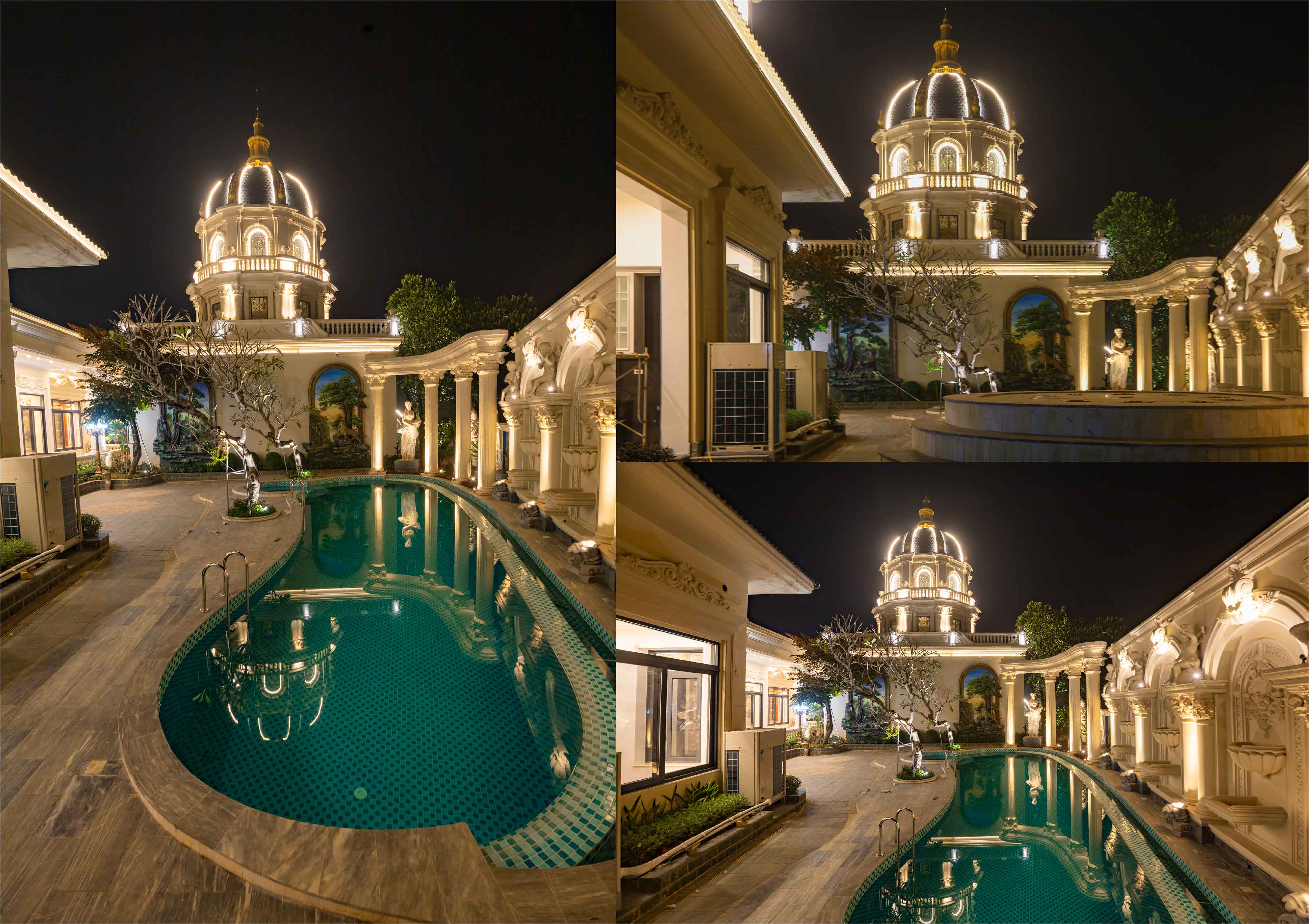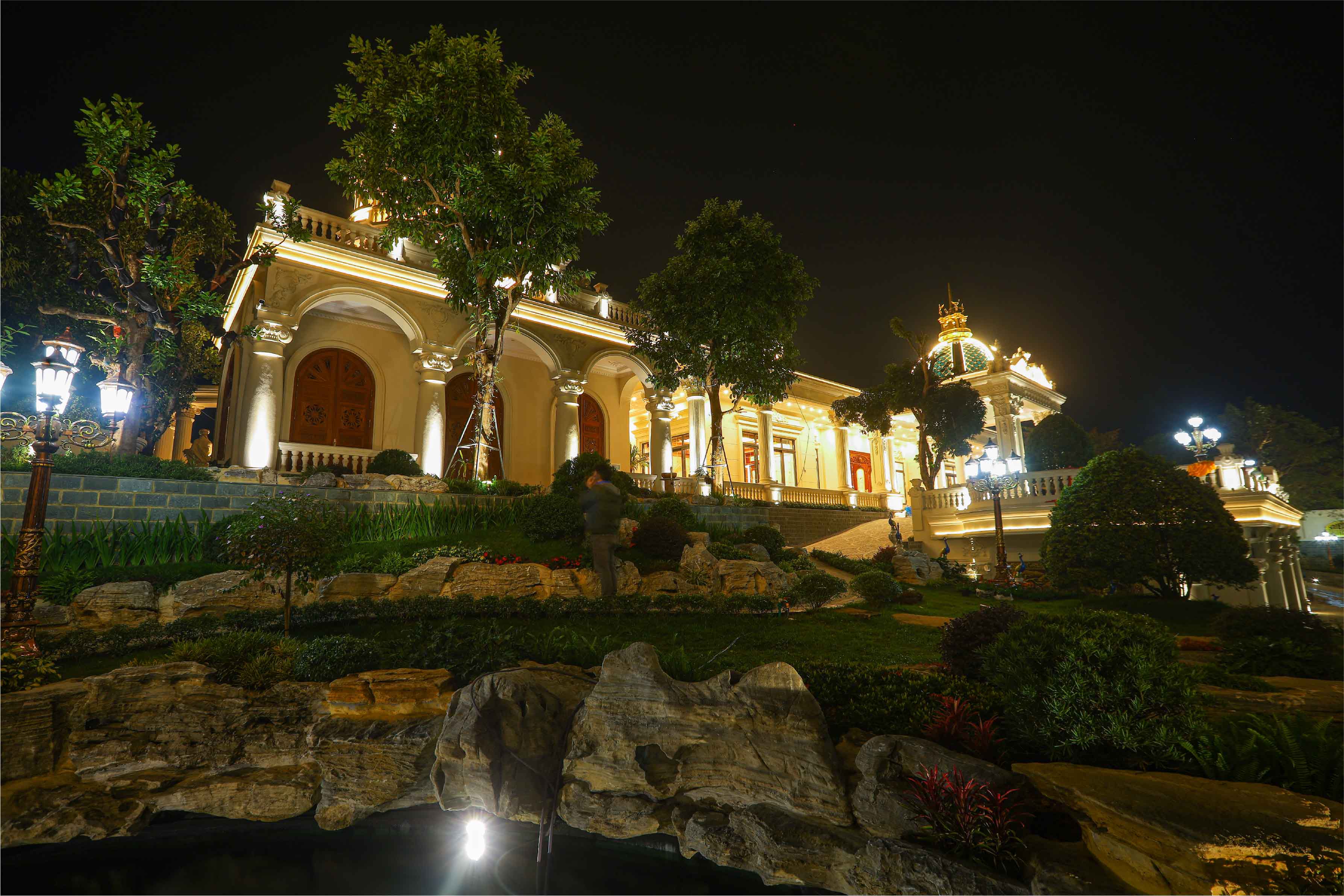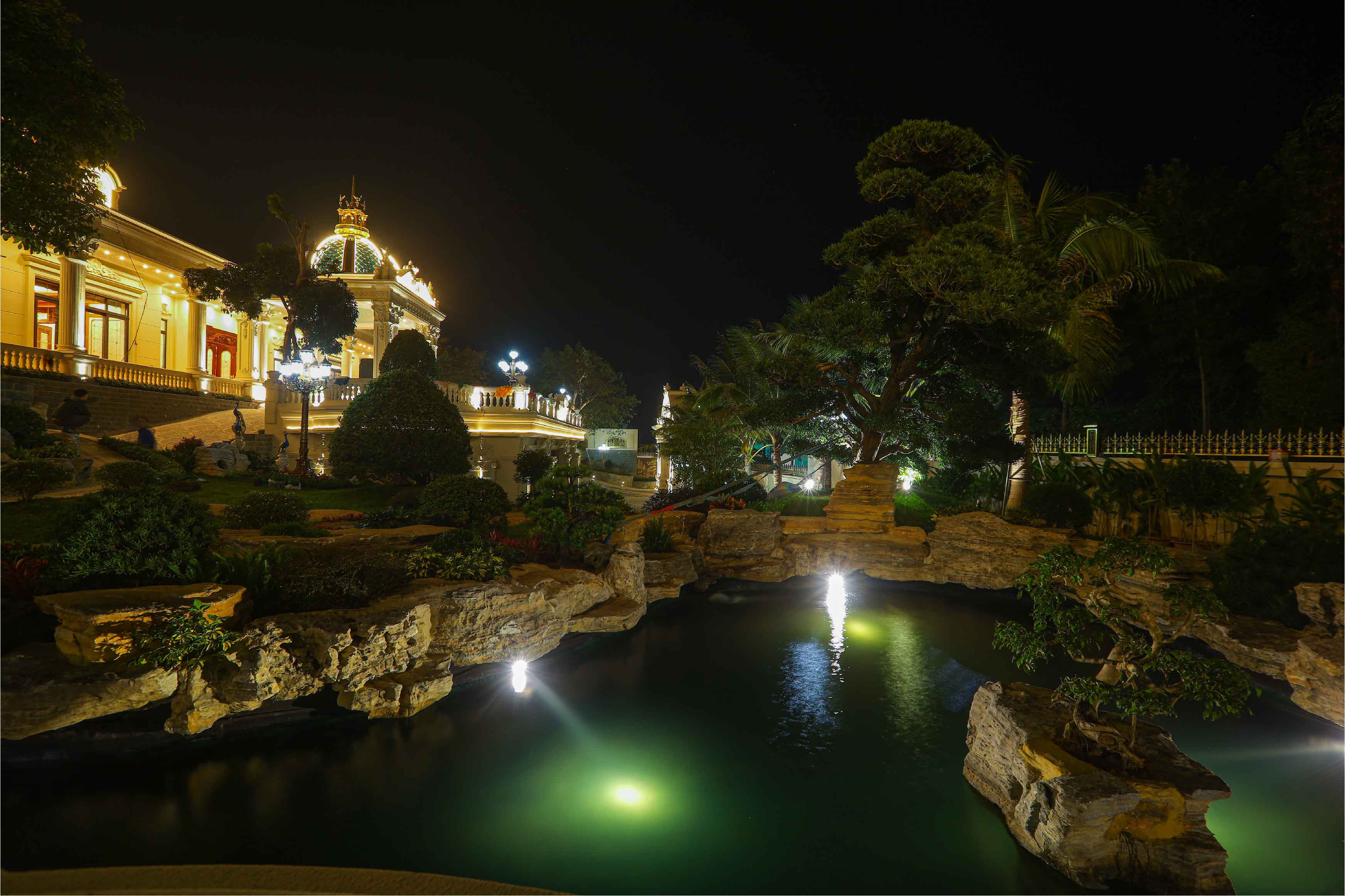 Sự kết hợp hài hòa giữa ánh sáng và kiến trúc không chỉ tạo nên một khung cảnh huyền ảo, mà còn khẳng định đẳng cấp và gu thẩm mỹ tinh tế của gia chủ.